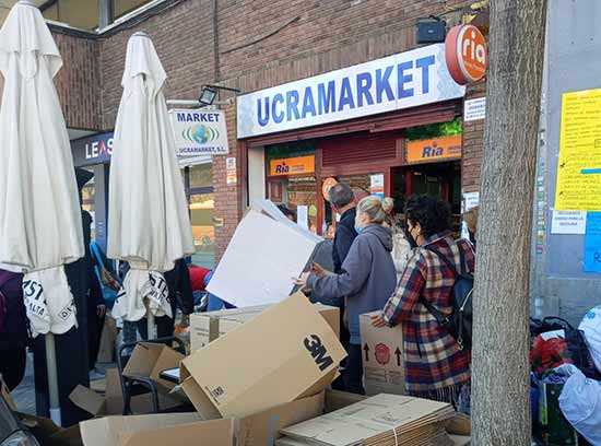 Recogida de ayuda humanitaria para Ucrania en Madrid.