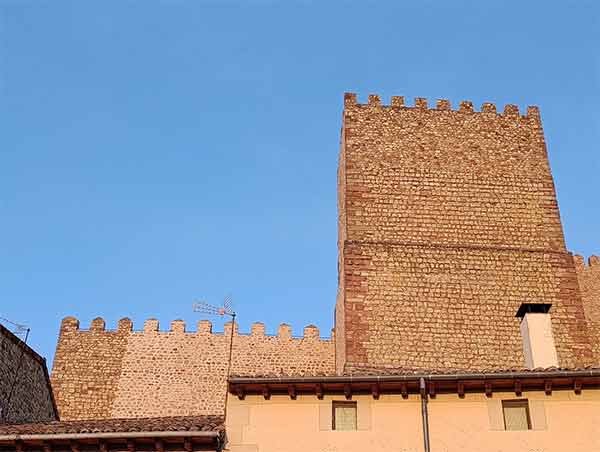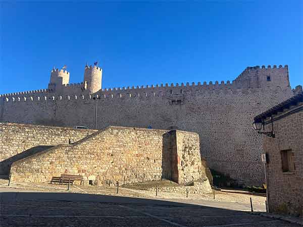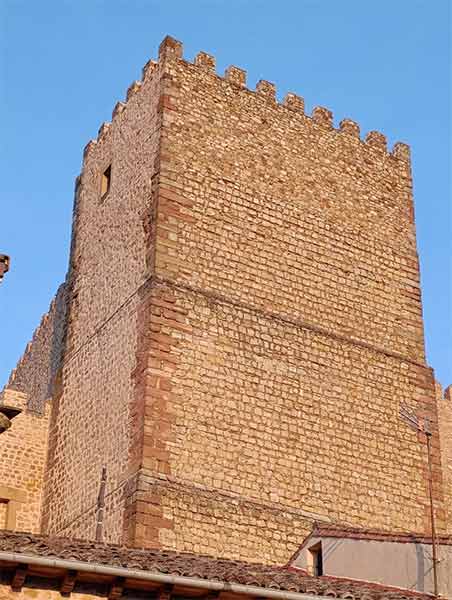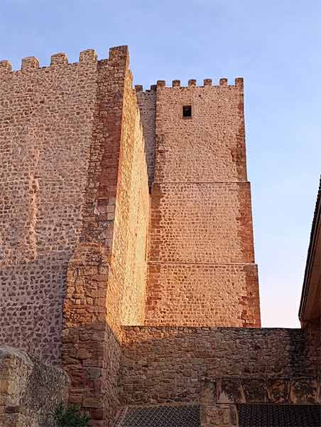 En este (sobre)rejuntado beige que llega casi a tapar las piedras en algunas zonas, aunque se apunta que se cepillará y rebajará, llegamos a la perpleja contemplación de la torre noroeste: un lienzo ha sido «puesto en valor», según la expresión de Turespaña, con la última intervención, mientras que el que da a la Puerta Nueva se mantiene como producto del devenir secular del castillo. Aprovecho para pedir que no se intervenga en este lienzo porque es la esencia misma de la historia de su construcción.