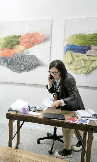 Bajo ese poderoso reclamo, las telas y frutos de Feduchi ofrecían el relato de un mundo de saberes, que enlaza con la Historia, y que, como han indicado los galeristas, interesó especialmente a restauradores de grandes museos. Los primeros días, tras la apertura de ARCO, el público flojeaba y no se cerraban ventas, pero después, llegó la ola que llenó esas callejas blancas de visitantes a los que ya se les había “hecho el ojo” en la gran feria internacional, y venían a ver qué se cuece entre las generaciones del futuro y algunos consagrados no tan dentro del arte oficial.