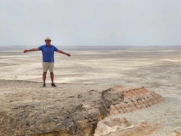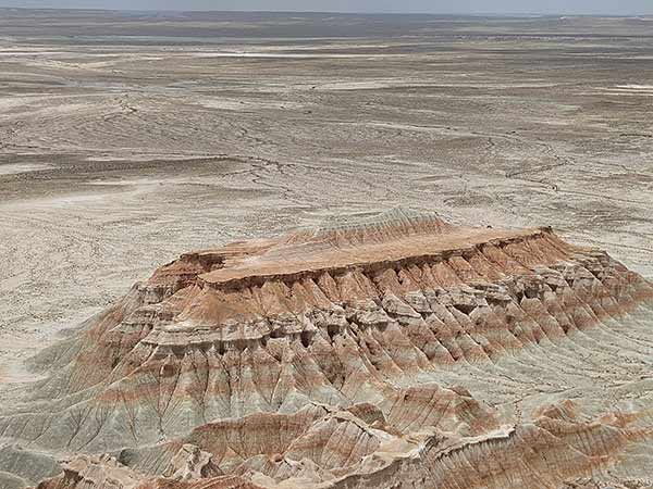 Otra vez en el desierto de Karakún nos dirigimos a una zona montañosa, con unos cañones trazados por la acción del viento y el agua, y donde hace millones de años era un océano ahora es una maravilla de colores y formaciones rocosas, una inmensidad en la que estábamos solos, con vistas muy lejanas desde el montículo en que hicimos una parada .El espectáculo era perfecto, es como nos podemos imaginar un paisaje marciano.