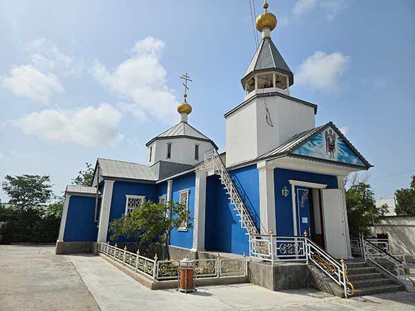 Ciudad portuaria, a orillas del mar Caspio, el hotel donde nos alojamos estaba en pleno puerto, muchos camiones de transporte, esperando ser embarcados a Bakú, y un ajetreo extraño en el hotel que no pudimos averiguar el motivo. La ciudad no tiene muchos sitios que ver, salvo una preciosa iglesia ortodoxa rusa, con culto todavía, del principios del siglo XX.