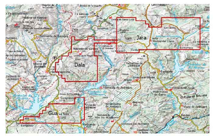 Su solicitud contempla tres proyectos denominados Gua, Dala y Jara, una ingeniosa manera de tratar de burlar parte de los requisitos medioambientales que exigiría la actuación en un solo proyecto cuyo nombre sería, intuimos, Guadalajara. Este enfoque coordinado multiplica los efectos territoriales y acumulativos y sugiere una estrategia territorial de mayor escala que la evaluada individualmente. El objetivo es la búsqueda de yacimientos de oro en una extensión conjunta que suma casi 15.000 hectáreas. Se pretende realizar una serie de sondeos sobre 485 cuadrículas mineras (de acuerdo con la definición y los derechos que establece el Servicio Estatal de Minas) en una primera fase; y, en caso de resultados positivos, se volvería a perforar en una segunda a una profundidad entre 300 y 400 metros. También se solicita realizar trabajos de geoquímica, geofísica de superficie, calicatas y recolección de muestras de mineralización en las escombreras de las antiguas minas. Los trabajos prevén tres años de investigación con un presupuesto estimado de 1.209.510,19 euros.