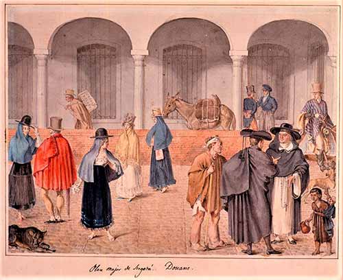 1824. Plaza Mayor de Bogotá, aduana. Acuarela de François Désiré Roulin. Imagen Banrepcultural.